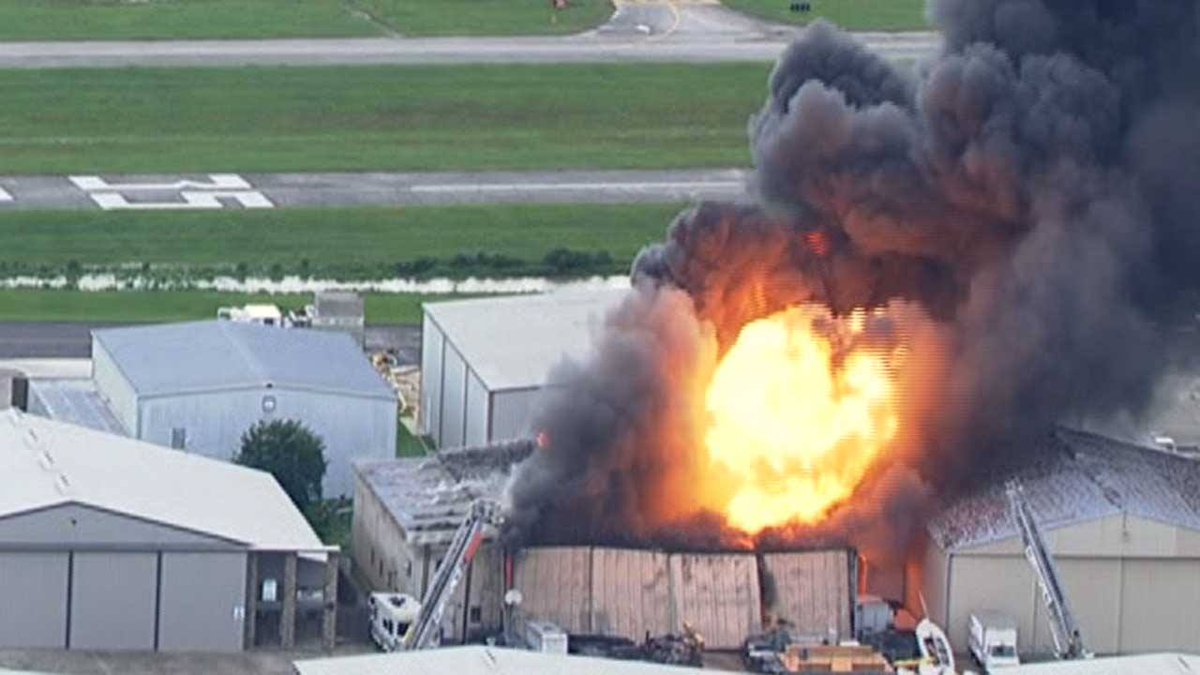 WATCH LIVE: Sky Eye HD over fire burning at hangar at Hooks Airport