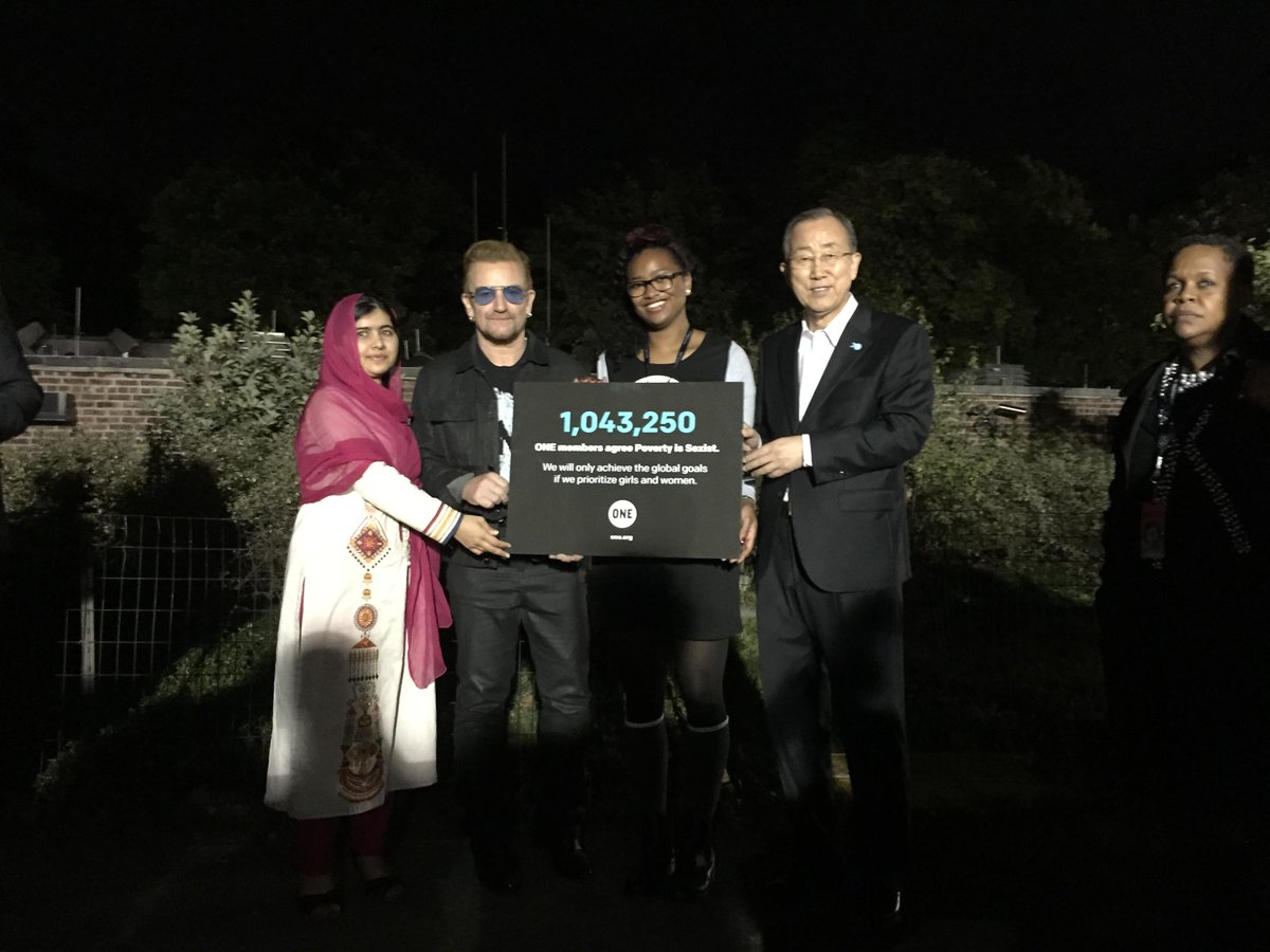Malala, Bono, & ONE Youth Ambassador, Cassandra, deliver