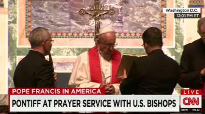 Pope Francis at prayer service with U.S. bishops at St. Matthew's Cathedral in Washington.