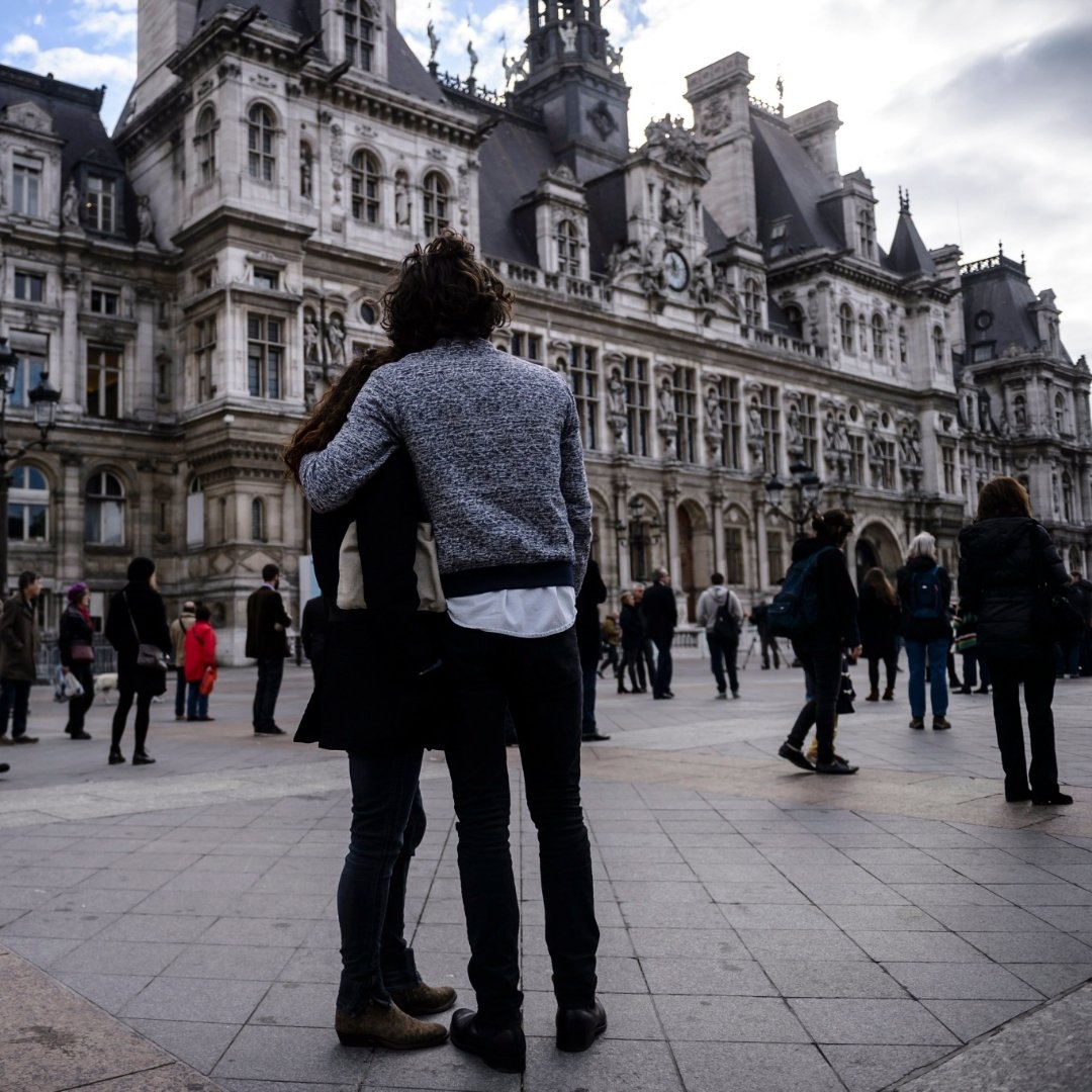 From Instagram: People gather to observe a minute of silence in front of the Paris City Hall
