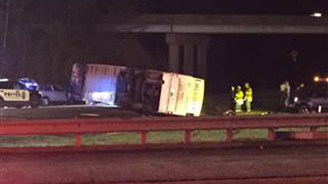 Bus transporting Virginia college students overturns, 33 injured
