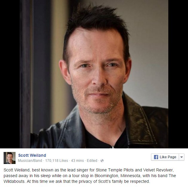 Scott Weiland dead at 48, his manager Tom Vitorino confirms