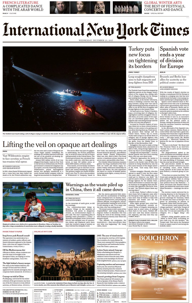 Wednesday's Int NYT: 'Turkey puts new focus on tightening its borders'